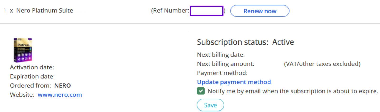 After log in to Nero myAccount