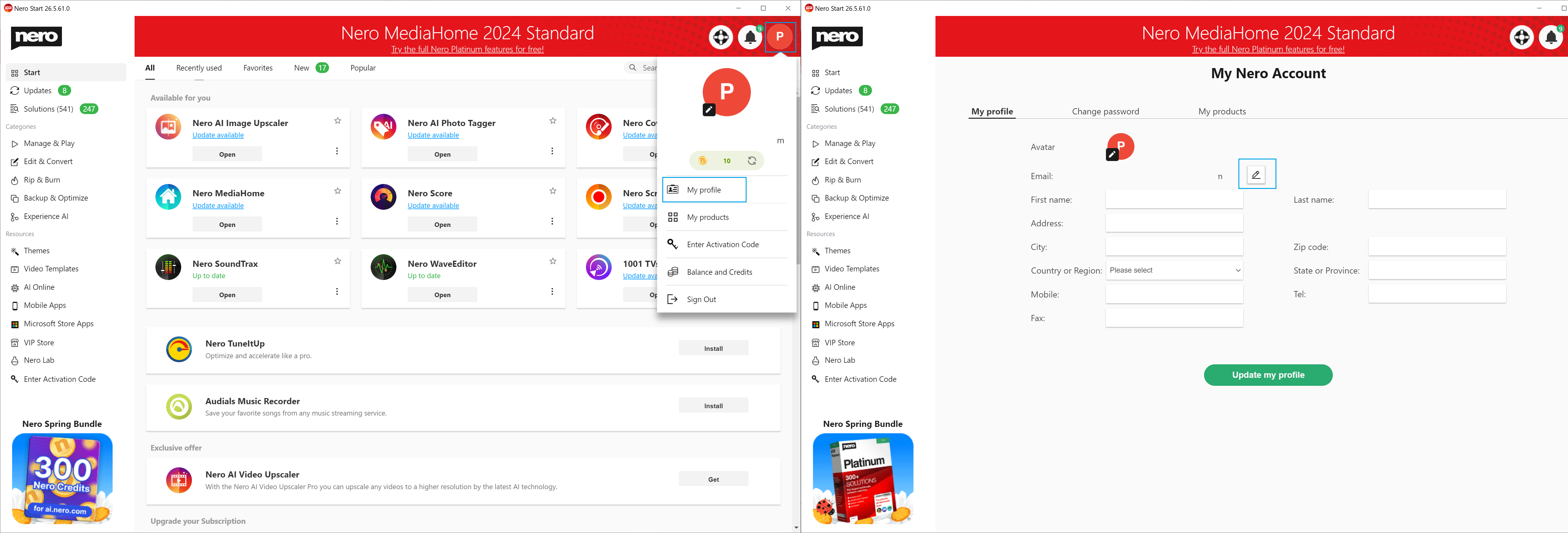1. Abra Nero Start en su ordenador e inicie sesión en la cuenta cuya dirección de correo electrónico desea cambiar.