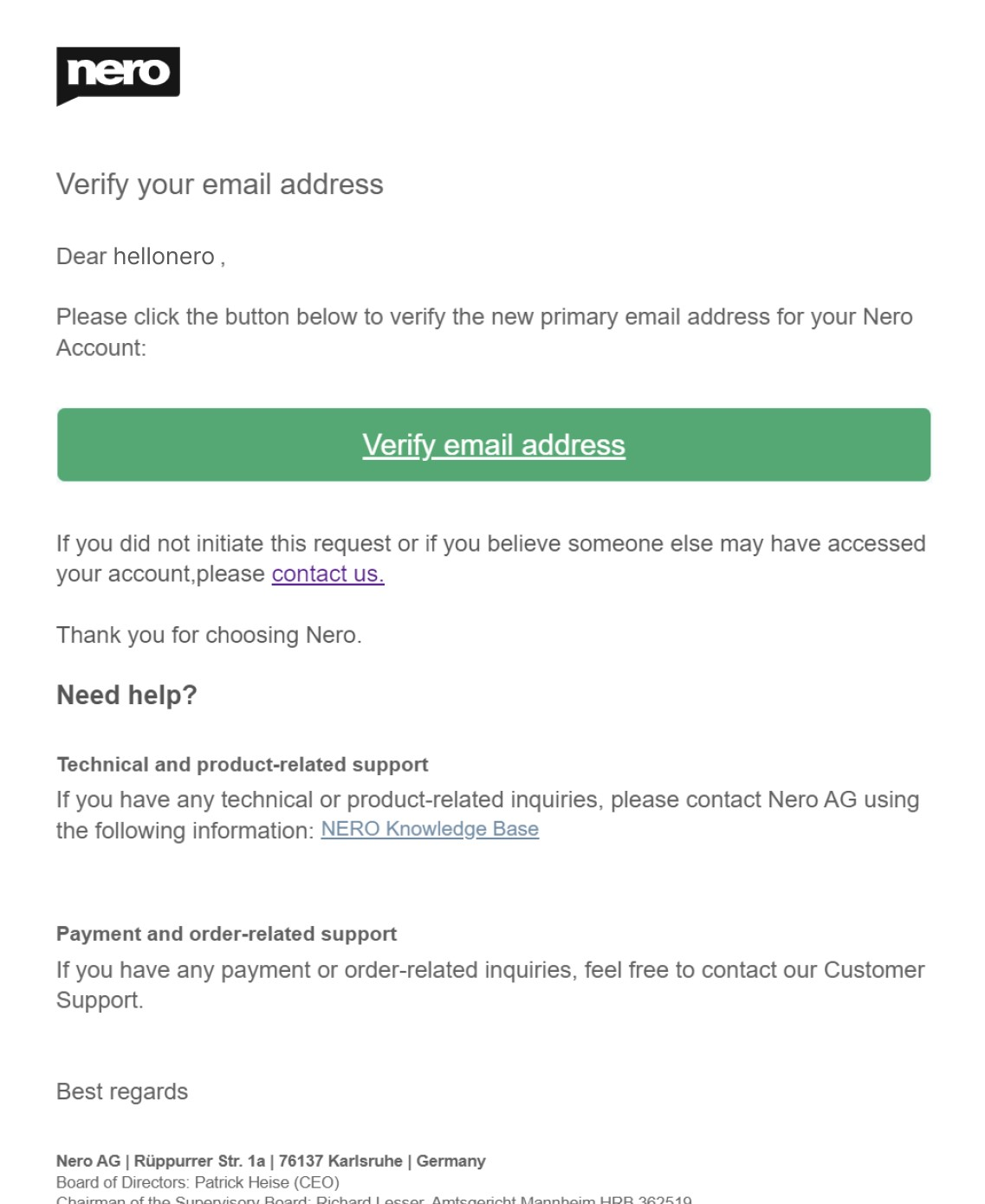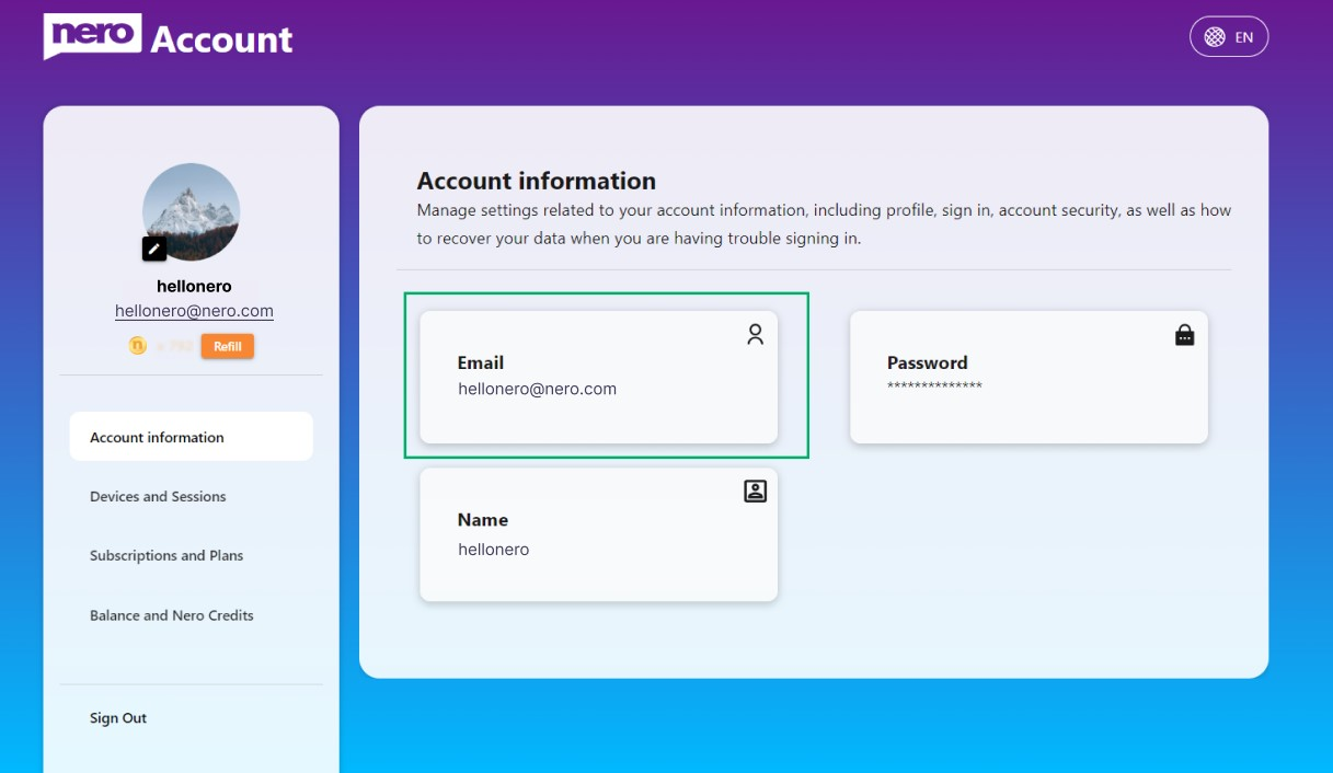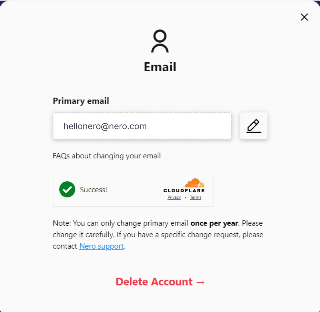 1. La dirección de correo electrónico es una información muy importante para su cuenta de Nero, por lo que debe cambiarla con precaución.