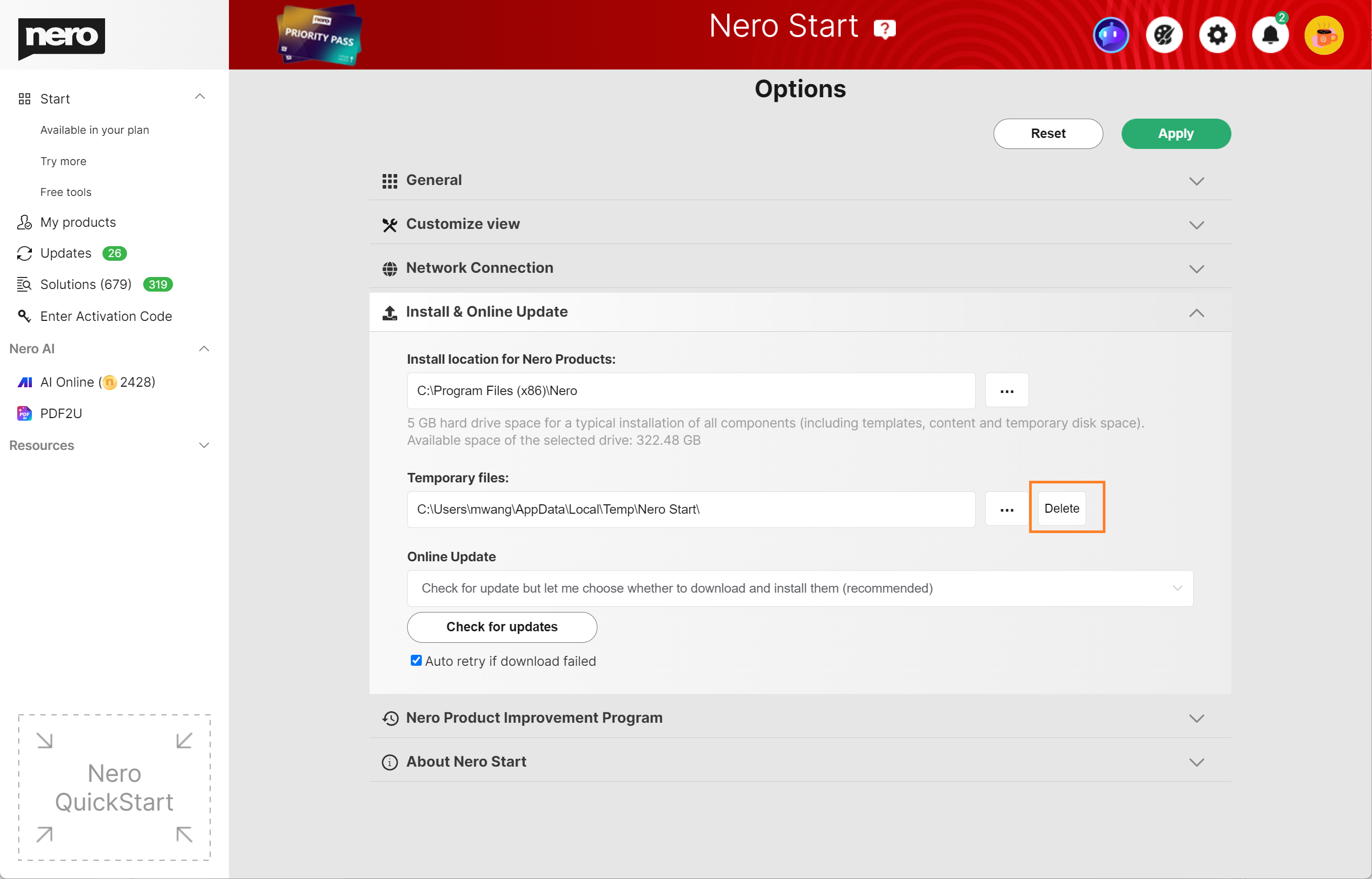 Lorsque vous ne parvenez pas à installer ou à mettre à jour une application dans Nero Start, vous pouvez essayer les méthodes suivantes pour résoudre le problème.