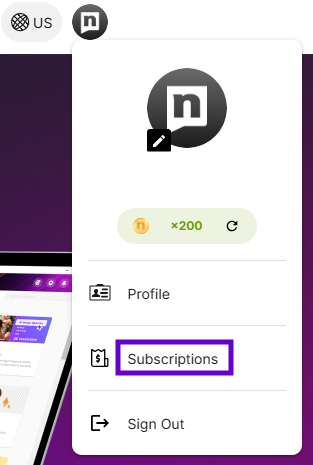 3. Selezionare Abbonamenti.